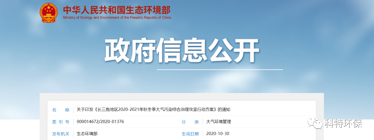 生態(tài)環(huán)境部、國家發(fā)展和改革委員會、工業(yè)和信息化部等10部門與上海、江蘇、浙江、安徽等4省(市)人民政府聯(lián)合印發(fā)《長三角地區(qū)2020-2021年秋冬季大氣污染綜合治理攻堅(jiān)行動方案》(以下簡稱《行動方案》)